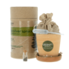 Contains: user guide, bottle with seeds, bag of soil, pot with saucer, and pipette.